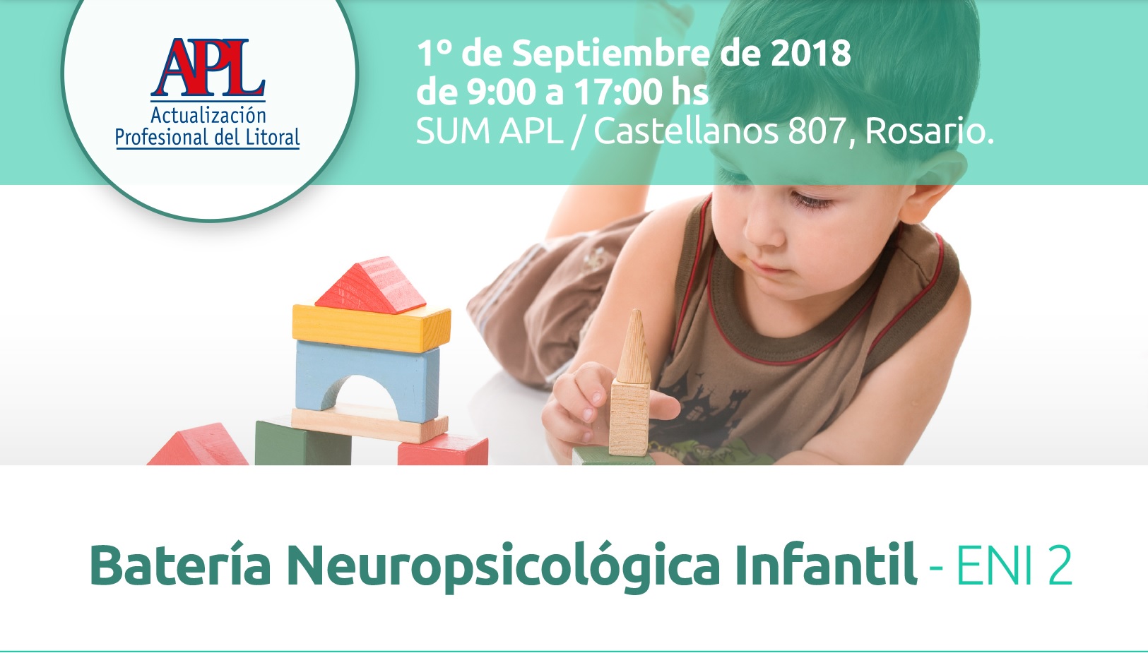 APL ofrece dos medias becas para el Curso «BATERÍA NEUROPSICOLÓGICA INFANTIL – ENI 2» que se realizará el 1 de septiembre en Rosario.Se sortea el día 27/08 entre los matriculados interesados que estén con la cuota al día. Enviar email con nombre completo, número de matrícula, DNI y número de teléfono celular a info@colegiopsprosario.com.ar (la media beca no se aplica a la matrícula)